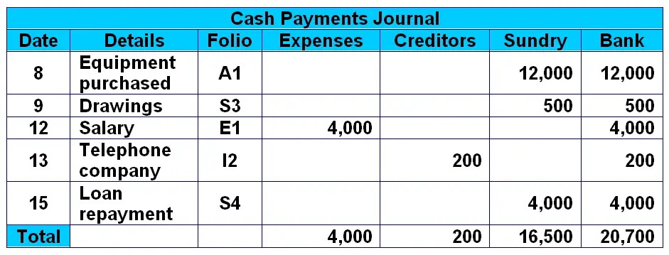 And the $20,700 cash payments in the "Bank" T-account come directly from the total of the "Bank" column in the cash payments journal.